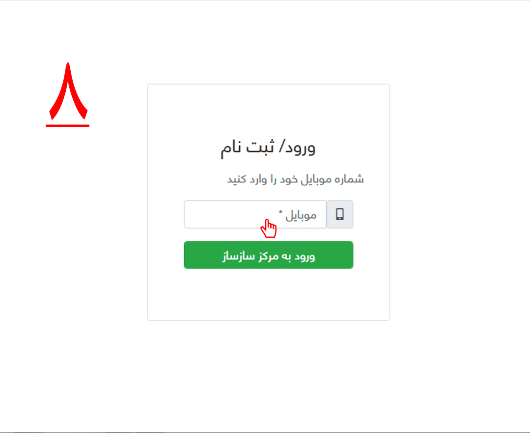 8-پس از کلیک بر روی گزینه "تسویه حساب" ، پنجره "ورود/ ثبت نام" برای شما باز میشود. همانطور که در تصویر شماره هشت مشخّص شده است، شماره تلفن همراهتون را در قسمت مشخّص شده وارد و بر روی گزینه "ورود به مرکز سازساز" کلیک کنید.